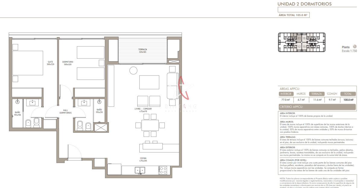 Amplio living y comedor, con ventanales de piso a techo que se integran con el entorno natural, cocina integrada, 2 dormitorios en suite + baño social, terraza lavadero, losa radiante sectorizada.