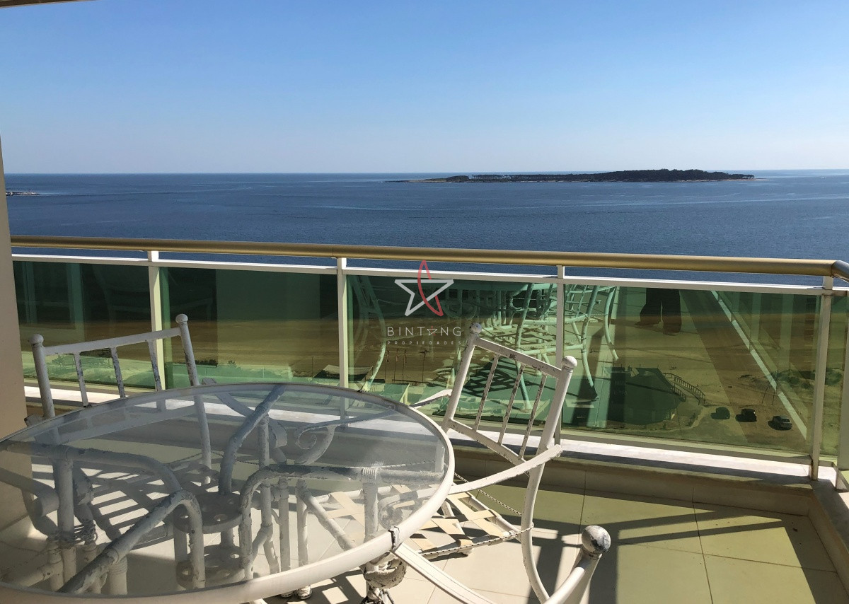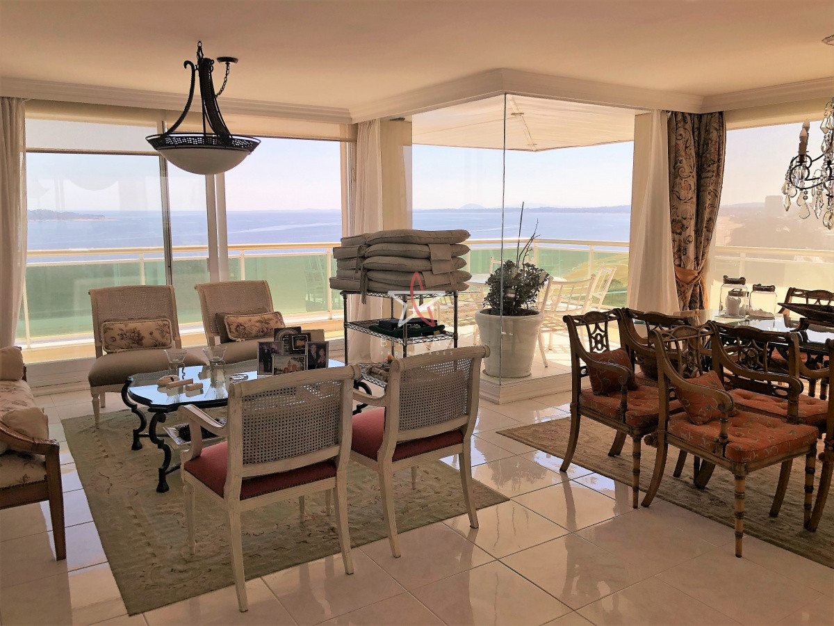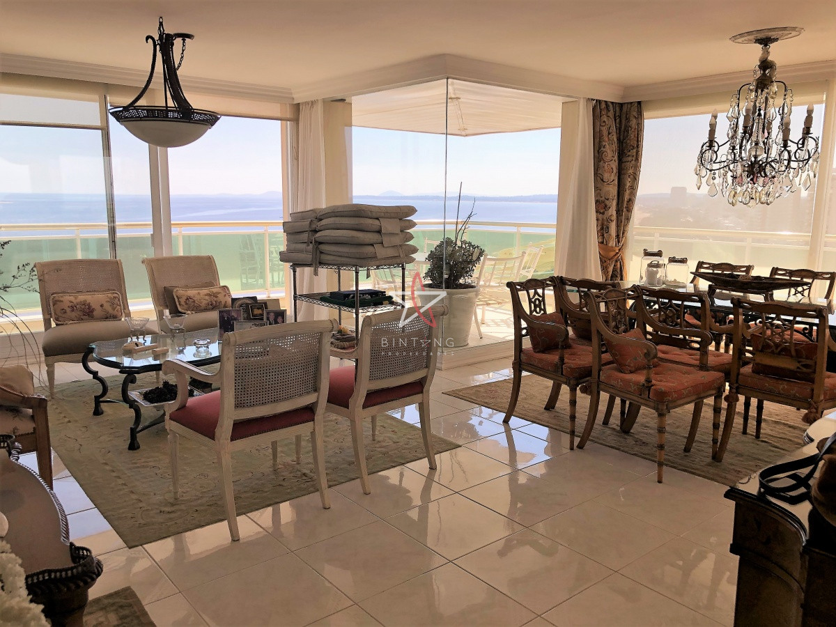 Piso alto con cómodo living comedor, terraza al frente. 3 dormitorios en suite, principal con vista franca al mar, los otros dormitorios con vista lateral al mar. Toilette. Cocina completa, dependencia de servicio. Garage para un auto. BINTANG Propiedades.