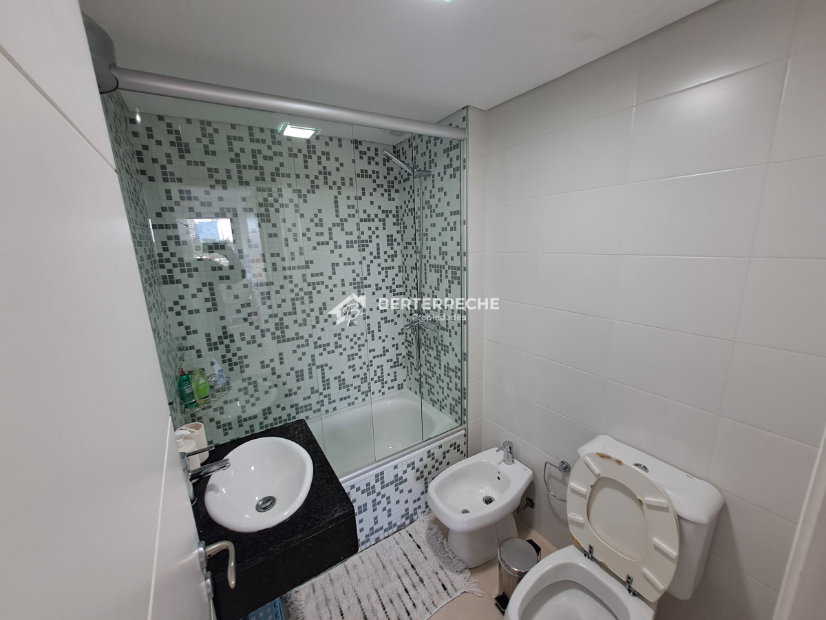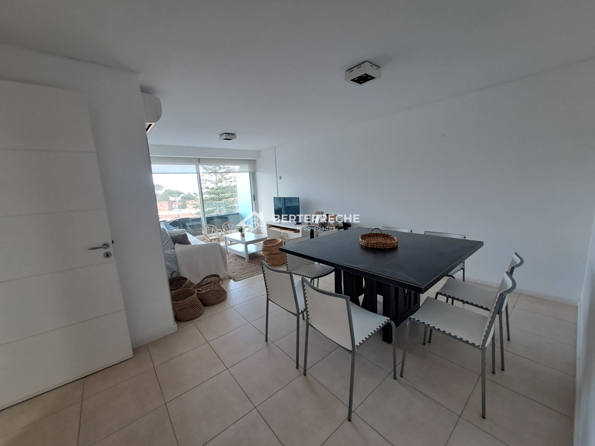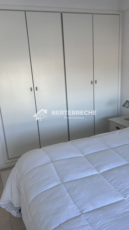 El diseño interior del apartamento incluye cocina definida, living comedor plenamente iluminado y una cocina que está equipada con electrodomésticos esenciales, como anafe, microondas, lavavajillas, heladera con freezer, campana y horno, lo que facilita la preparación de comidas durante su estadía.