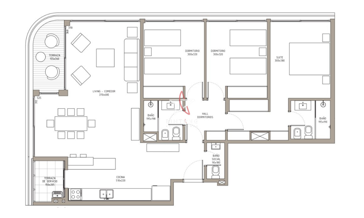 Amplio living y comedor, con ventanales de piso a techo que se integran con el entorno natural, cocina integrada, 2 dormitorios y 3 baños, uno de ellos en suite, losa radiante sectorizada.