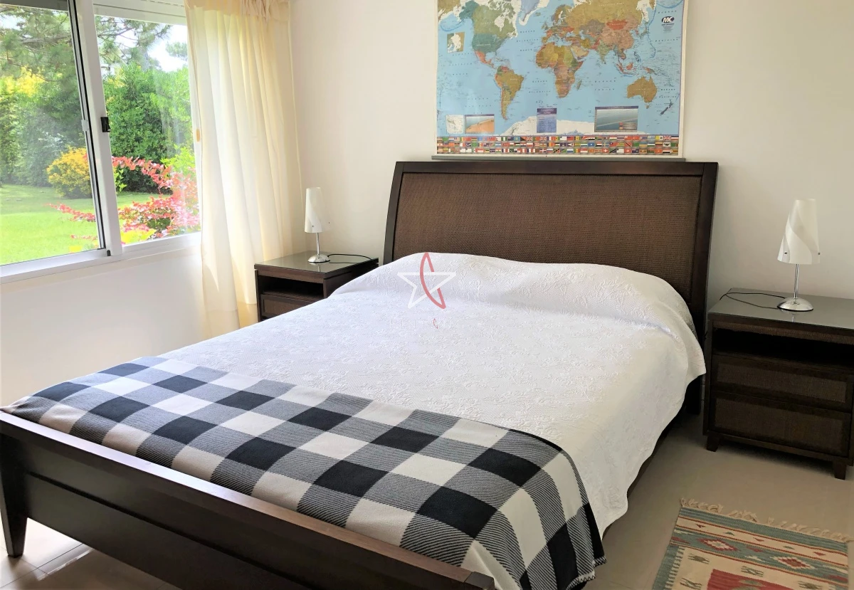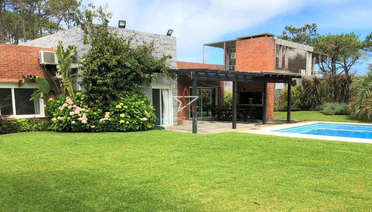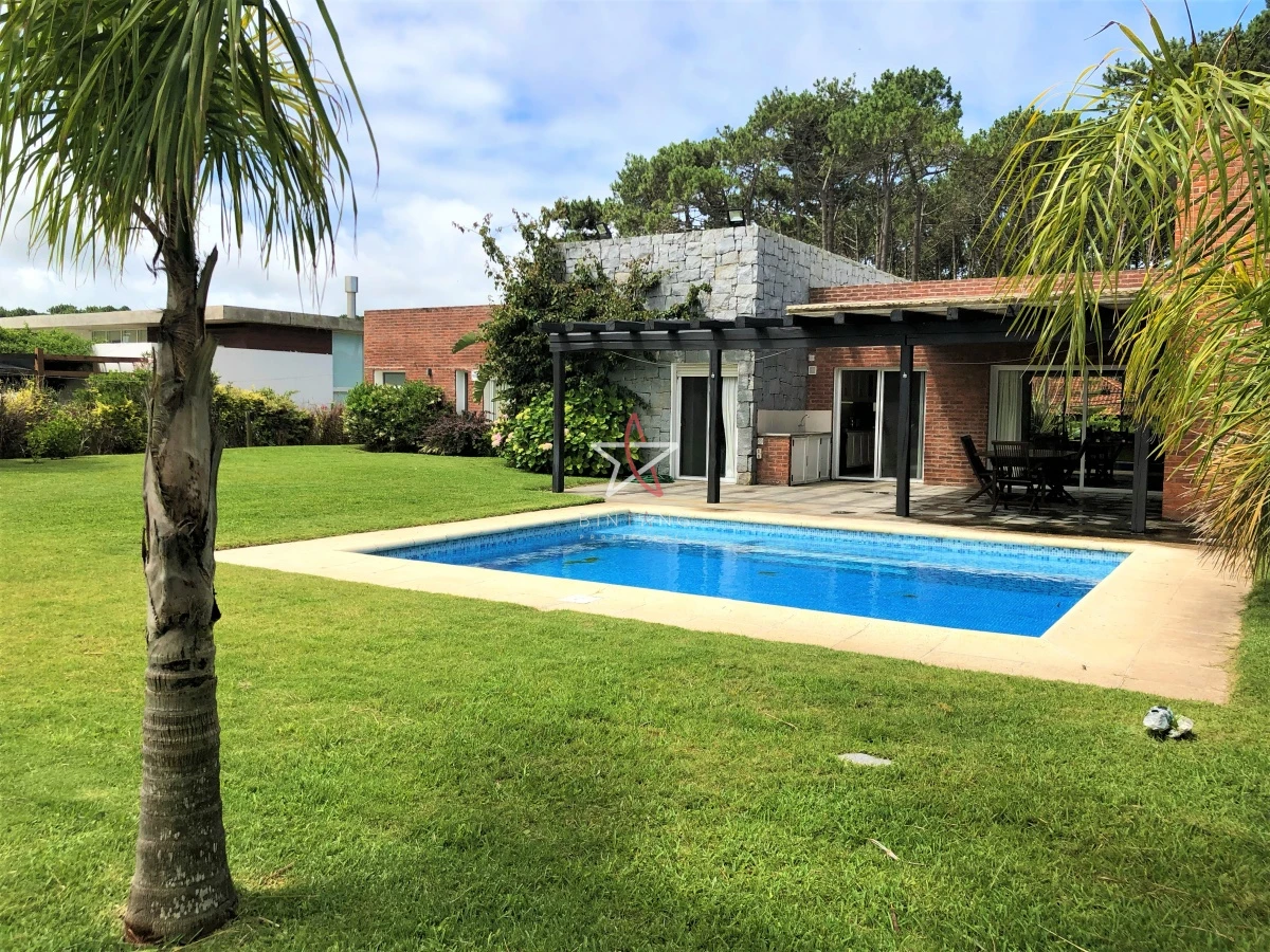 Chalet a 1 cuadra del mar, en el barrio Rincón del Indio. Terreno de 1010m2 y 270m2 construidos. Cómodo living comedor con salida al jardín. Toilette. La casa cuenta con 4 dormitorios en suite o 3 dorm y dependencia de servicio (por ubicación el 4 dormitorio es comodín). Además posee garage para 2 autos, pileta, parrilla y patio externo bajo pérgola, riego automático, 4 aire acondicionados, loza radiante en toda la casa, servicio de Puntacable, wi fi y línea telefónica fija. Excelente estado. BINTANG propiedades. ALQUILA
