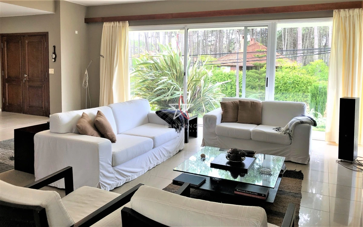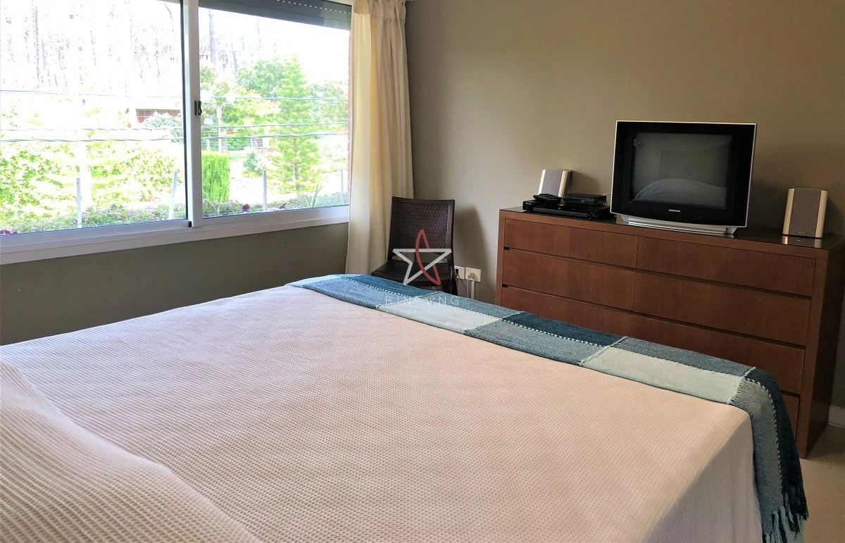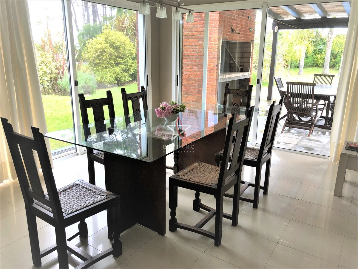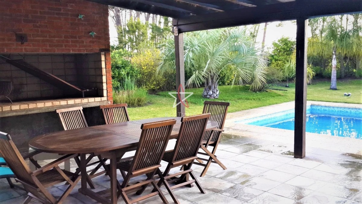 Chalet a 1 cuadra del mar, en el barrio Rincón del Indio. Terreno de 1010m2 y 270m2 construidos. Cómodo living comedor con salida al jardín. Toilette. La casa cuenta con 4 dormitorios en suite o 3 dorm y dependencia de servicio (por ubicación el 4 dormitorio es comodín). Además posee garage para 2 autos, pileta, parrilla y patio externo bajo pérgola, riego automático, 4 aire acondicionados, loza radiante en toda la casa, servicio de Puntacable, wi fi y línea telefónica fija. Excelente estado. BINTANG propiedades. ALQUILA