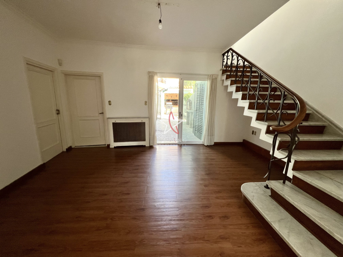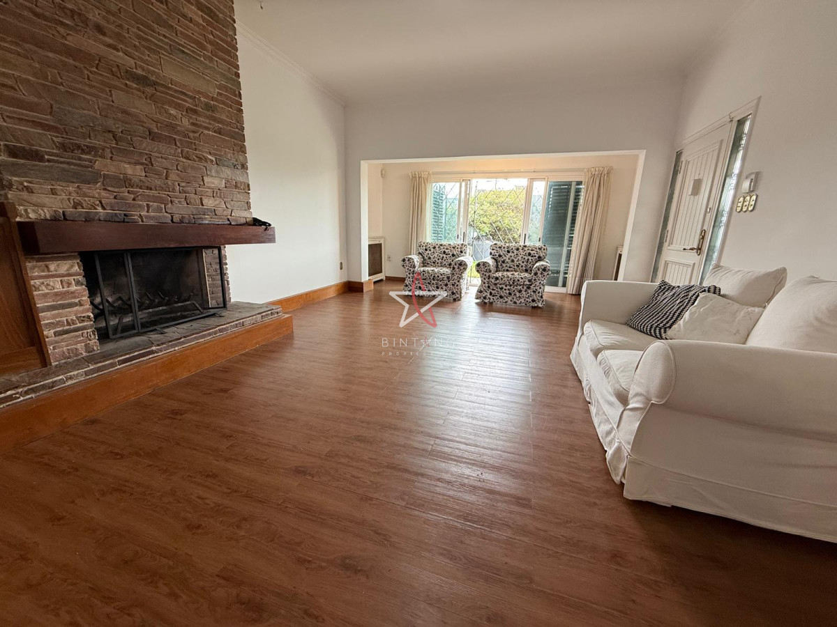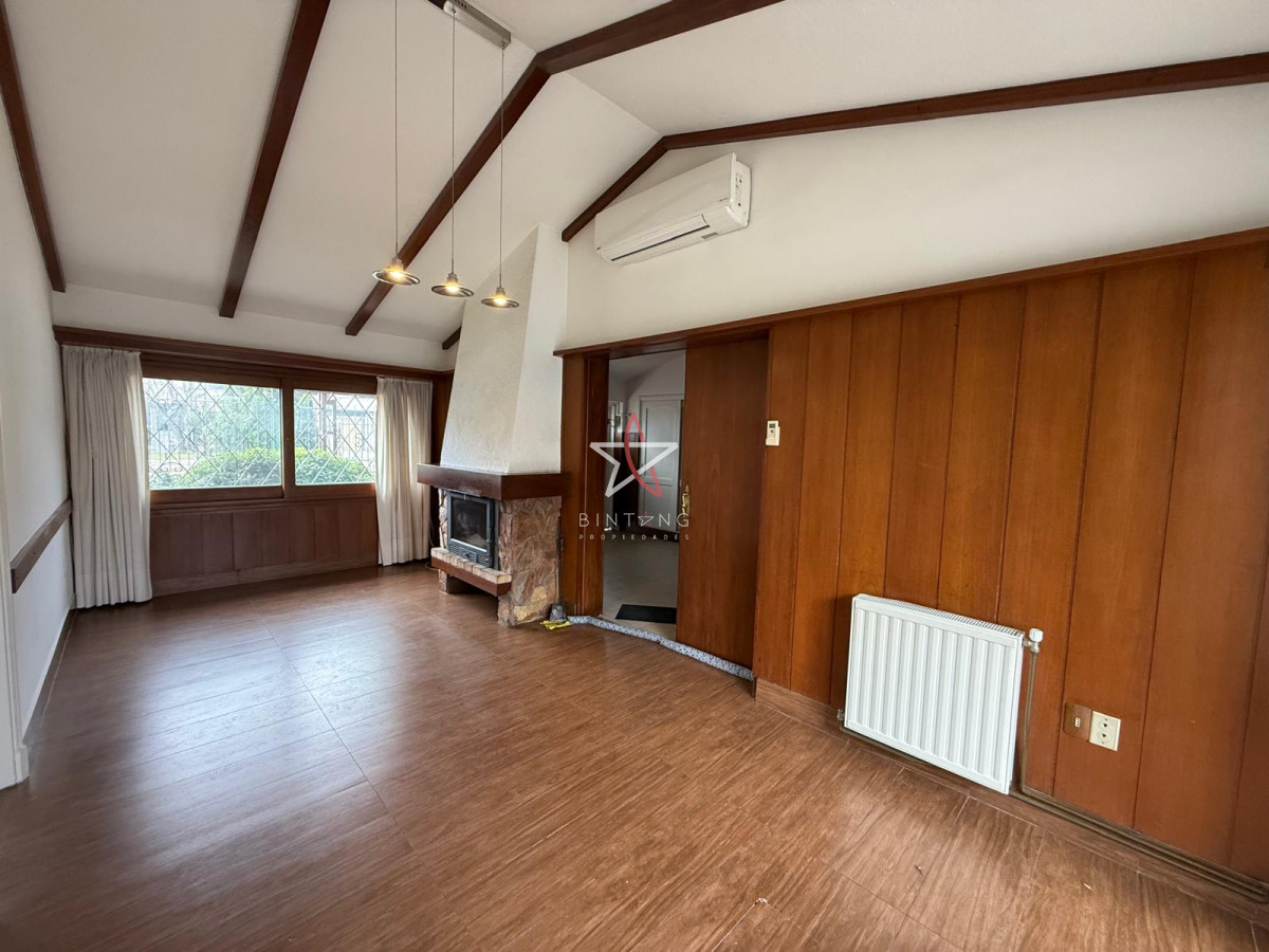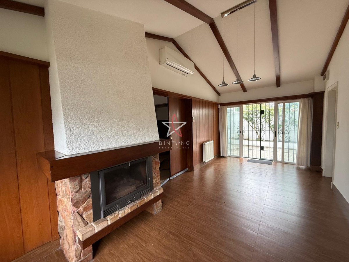Living al frente, luminoso con estufa a leña y salida al jardín al frente.