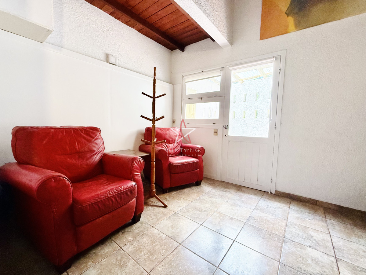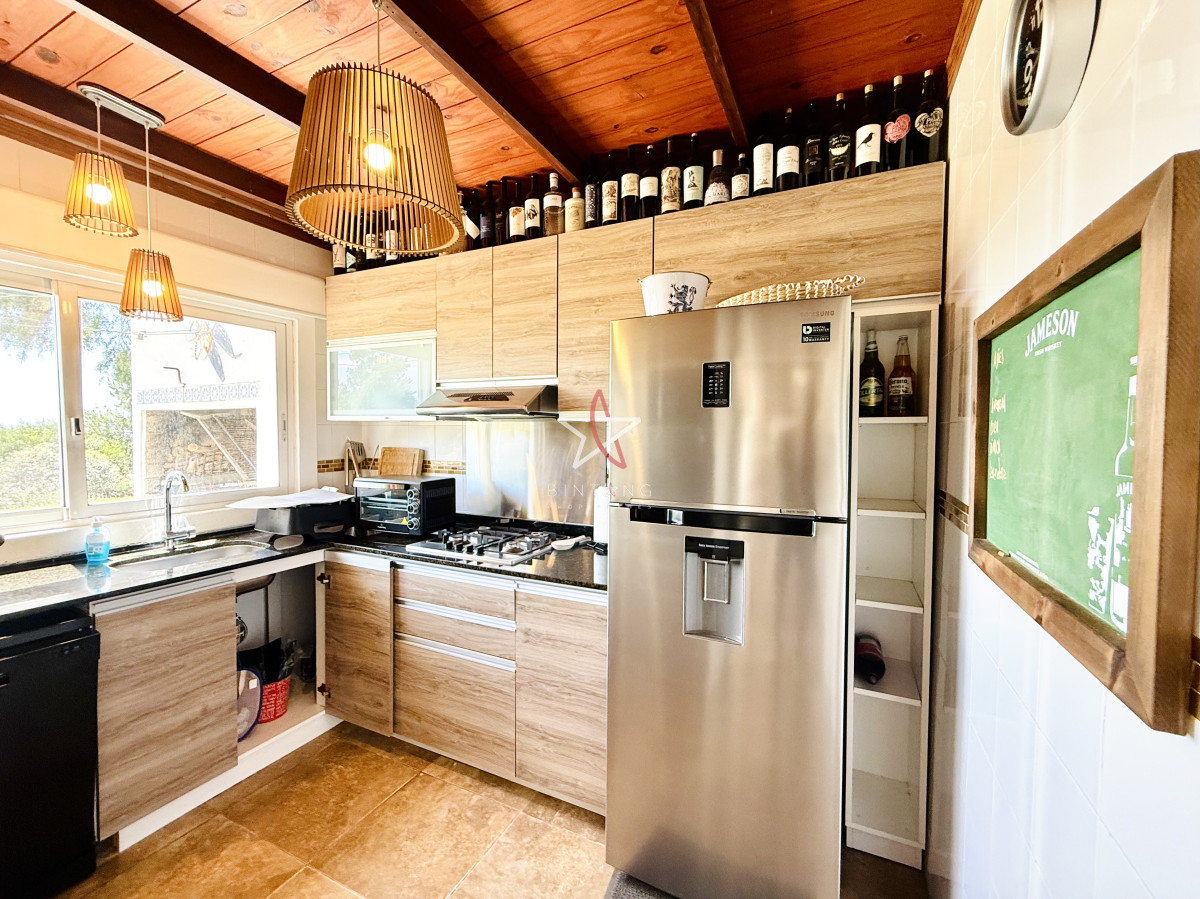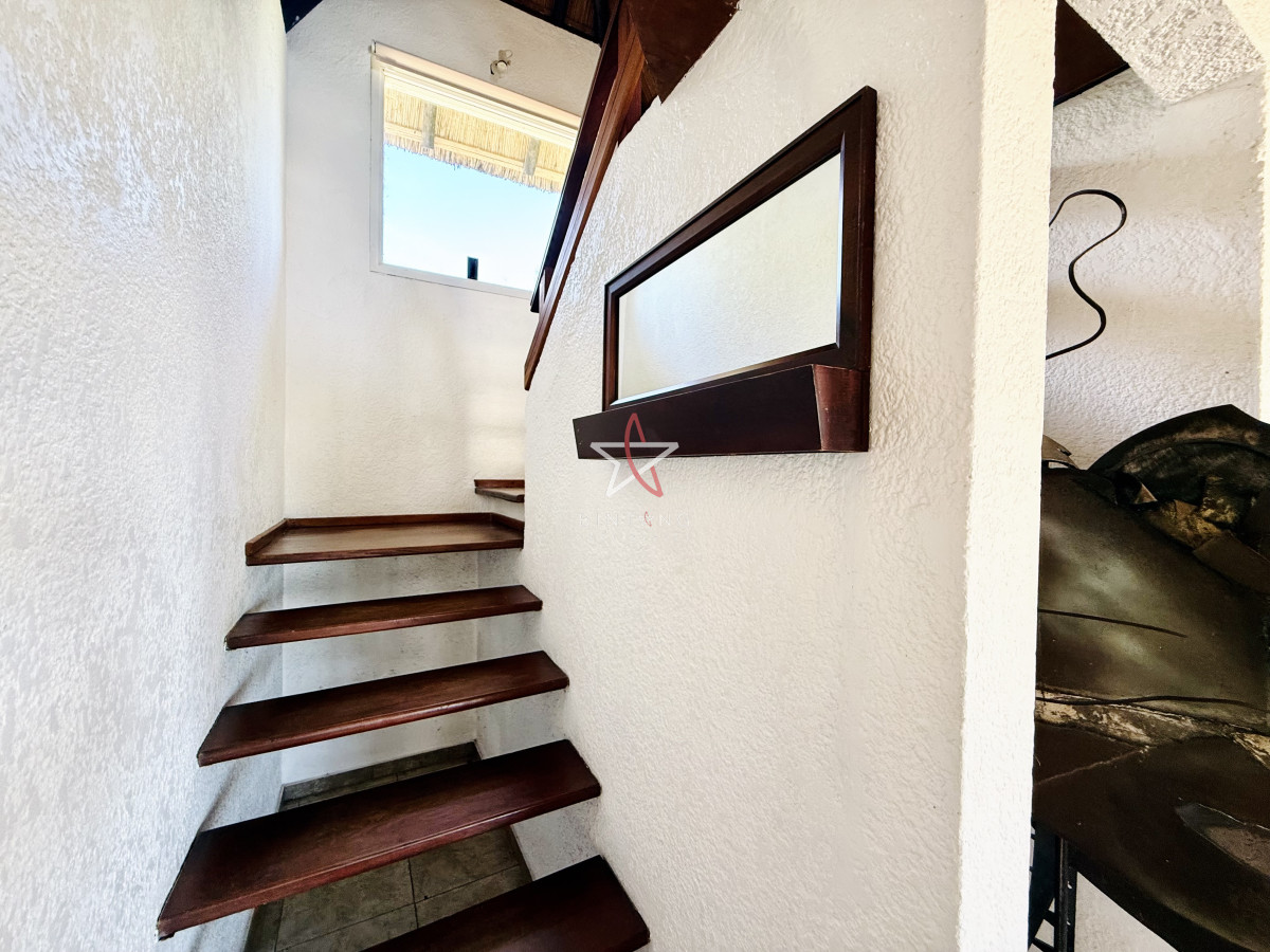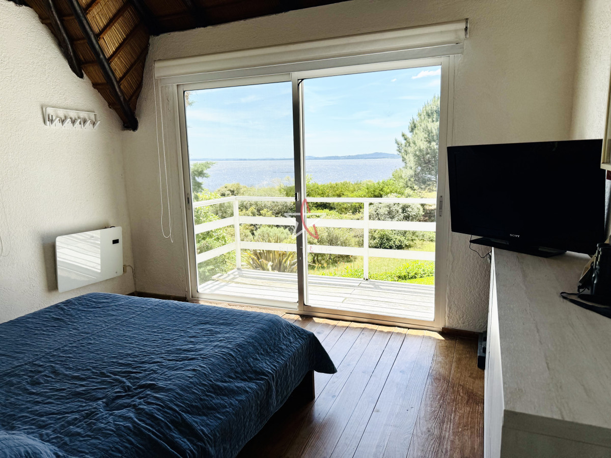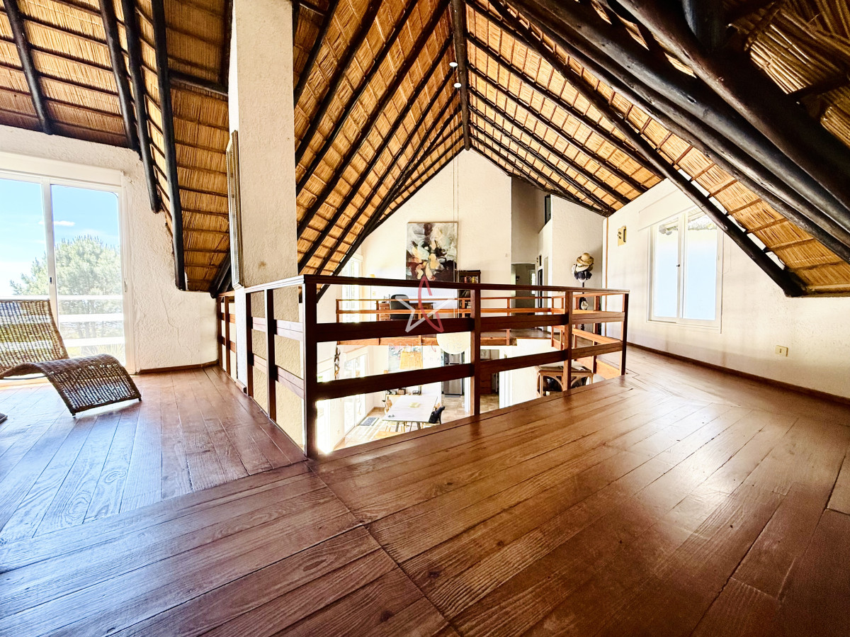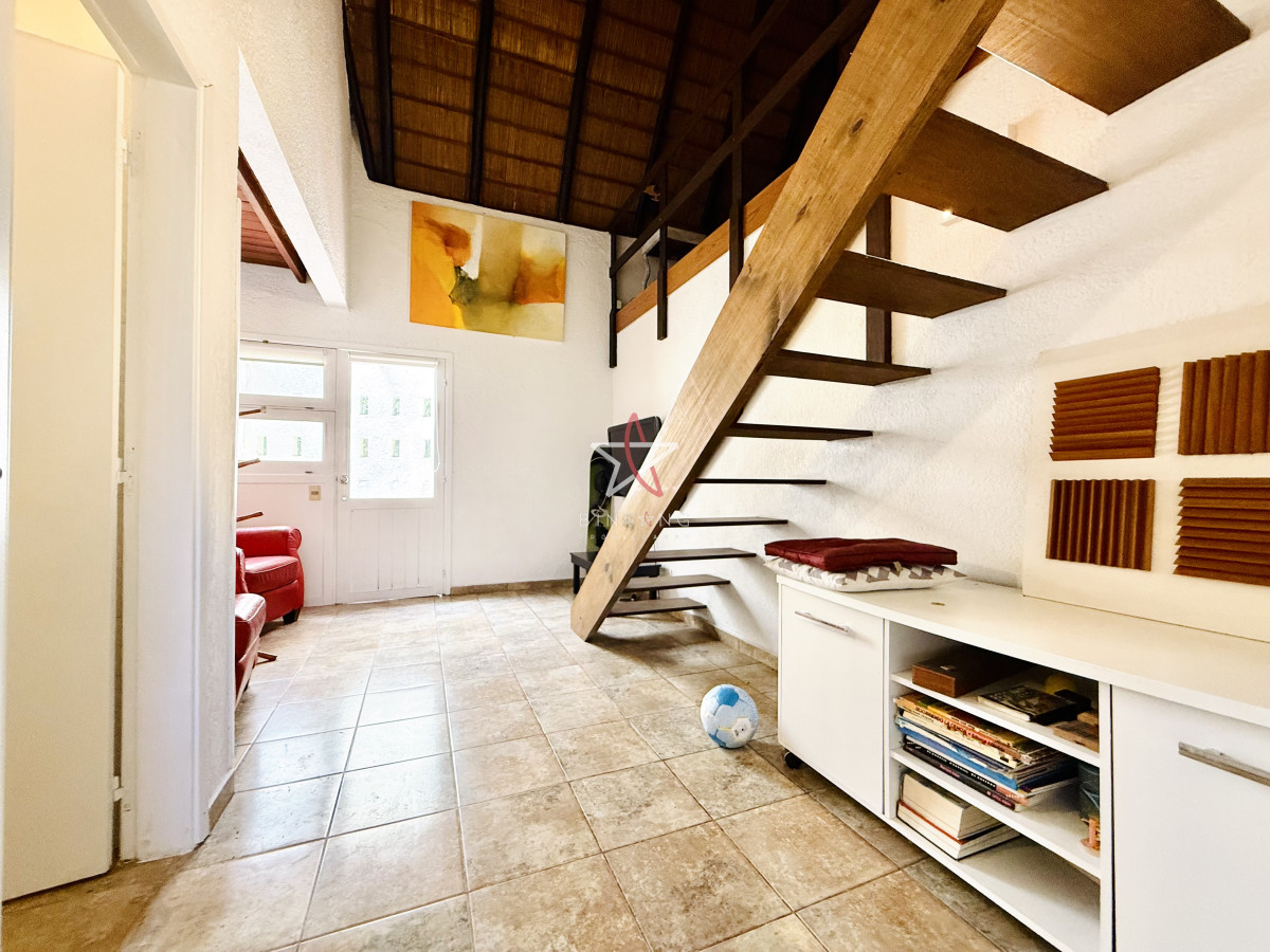 En planta baja encontramos un amplio living con estufa a leña, comedor, ambos con ventanales hacia la piscina y hermosa vista hacia la laguna.