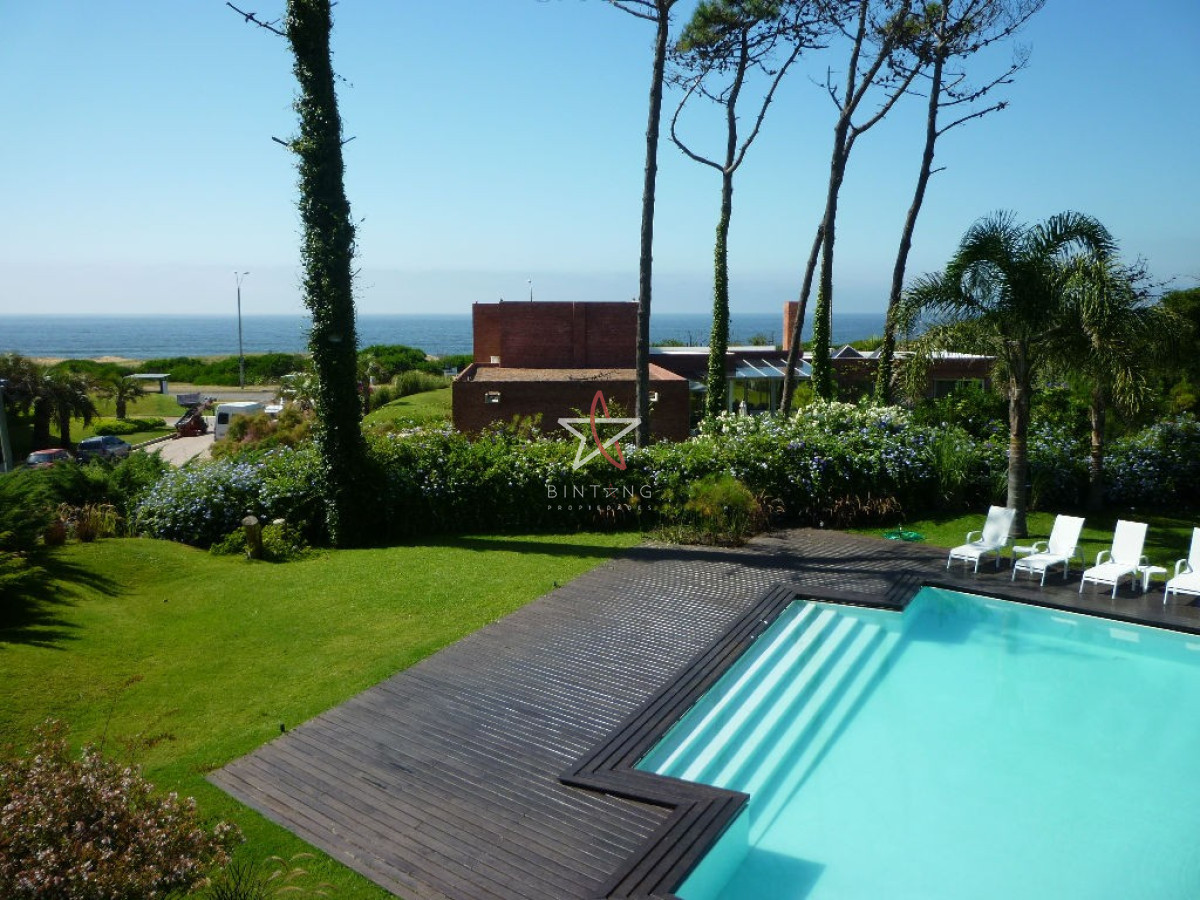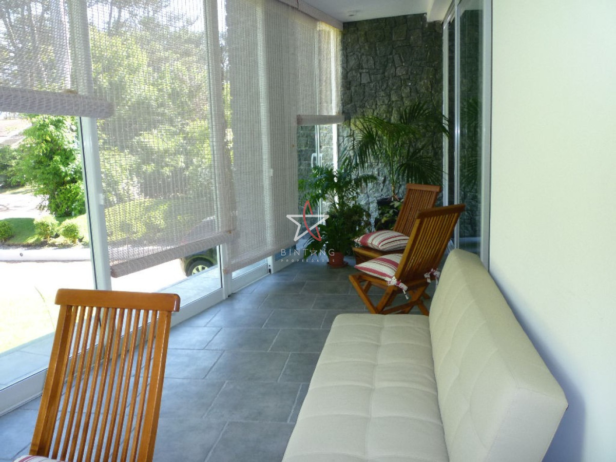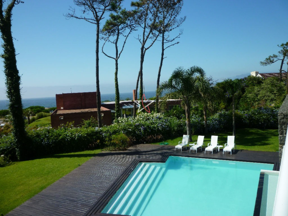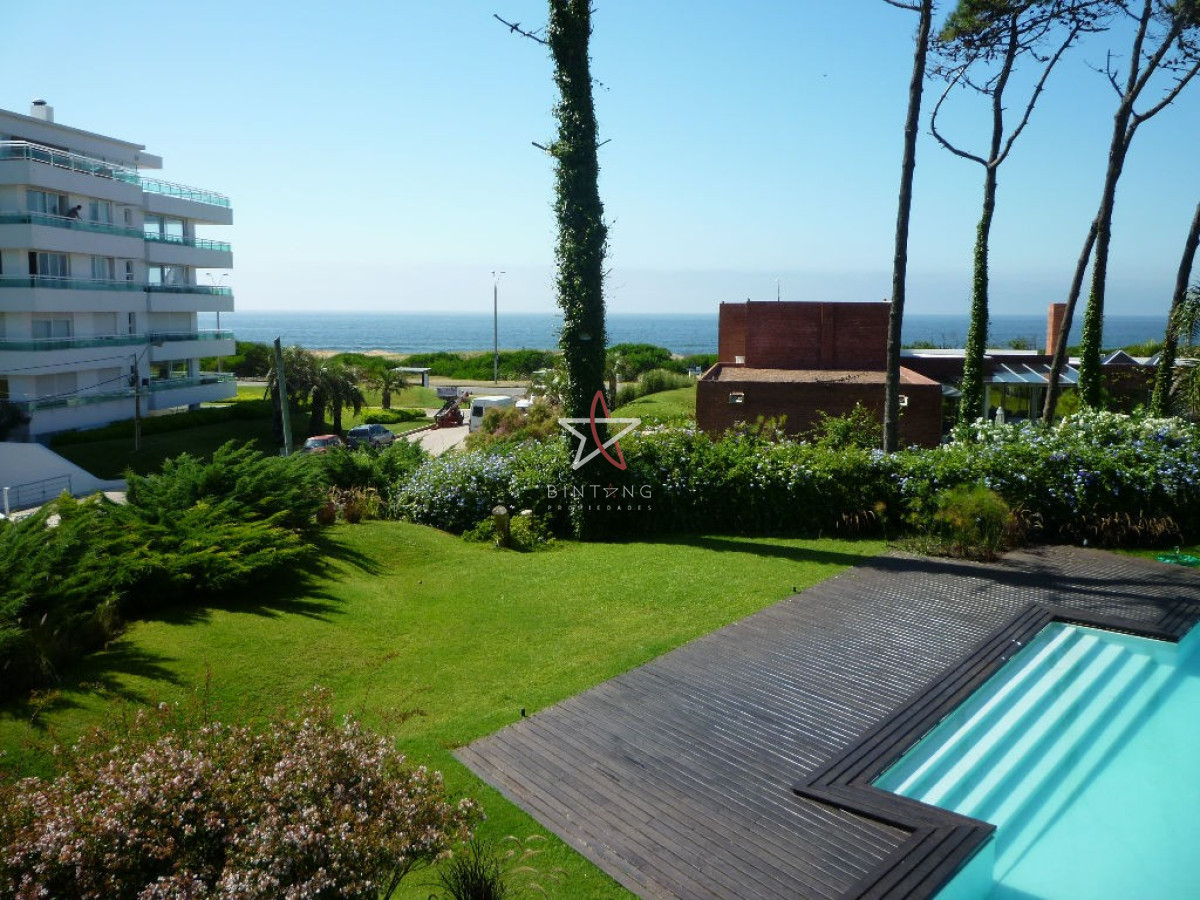 Terraza cerrada con salida al jardín con pileta, hermosa vista al mar.