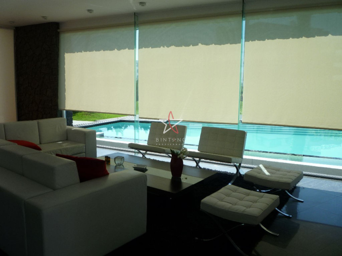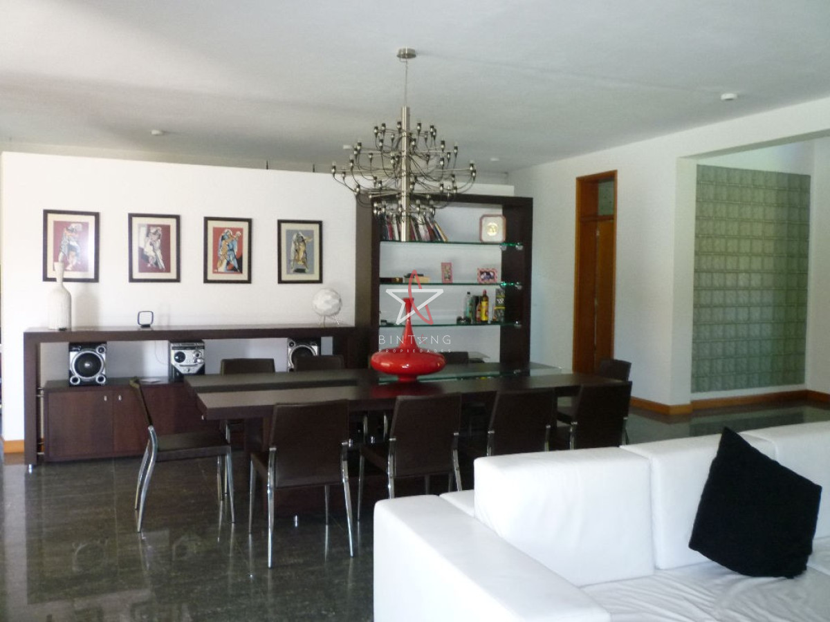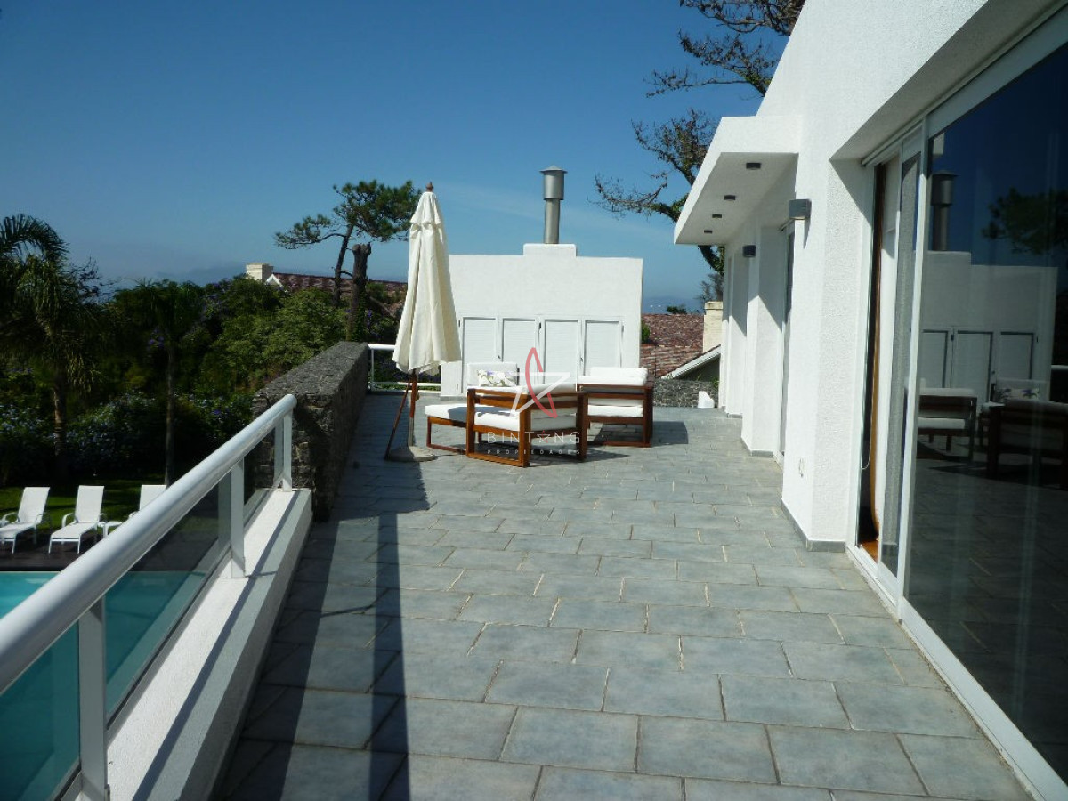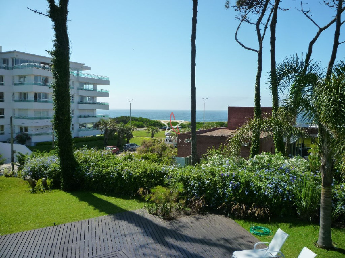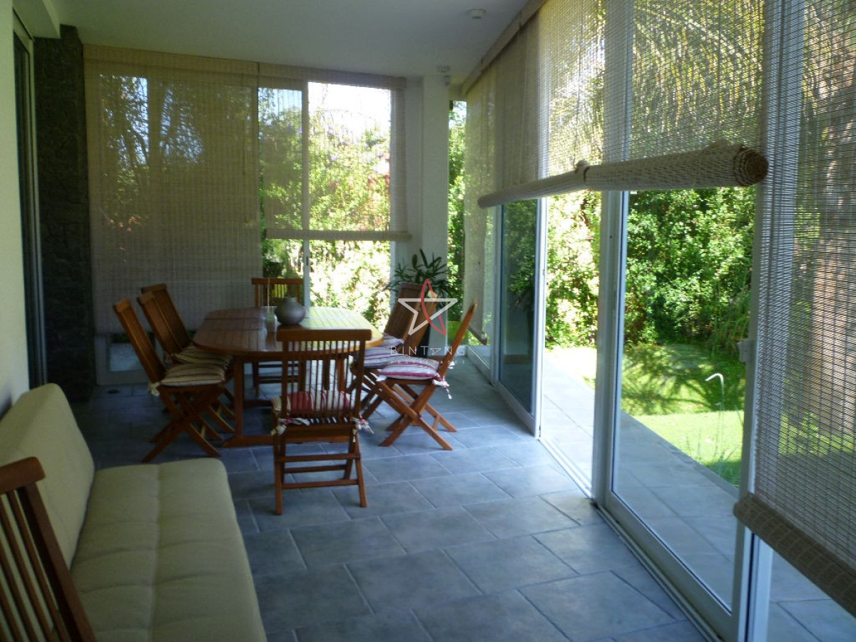Terraza cerrada con salida al jardín con pileta, hermosa vista al mar.