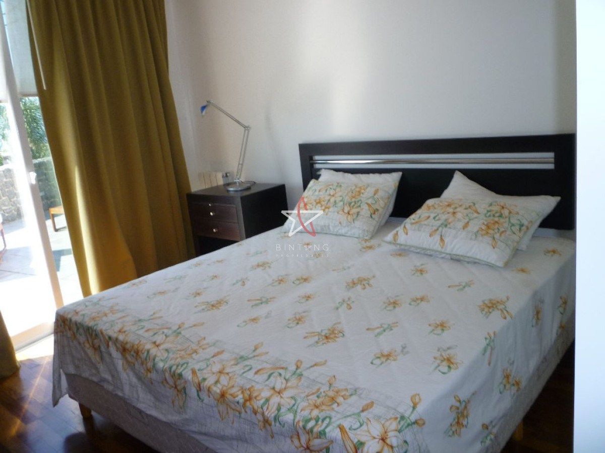 Los otros dos dormitorios comparten un baño. Amplia terraza con vista al mar y pileta de la casa.